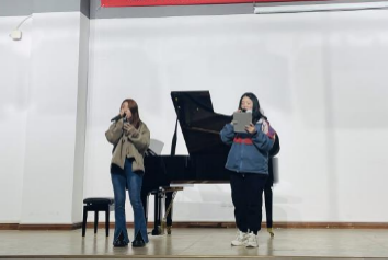接着,由陈炜烨、肖楚瑶带来流行歌曲《这世界那么多人》。这首歌曲表达了对青春的怀念,在茫茫人海之中,相遇就是一种幸运,今天2022级全体研究生集聚在这里,何尝不是是一种幸运呢。这首歌曲旋律优美动听,同学们都沉浸在音乐的氛围里。