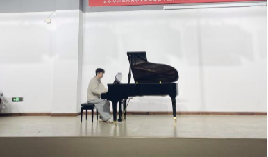 结束了紧张刺激的游戏环节,刘逸飞同学为我们带来了《贝多芬第二十八钢琴奏鸣曲》第二乐章。该作品弥漫着一种蓬勃的生命力,表达了贝多芬对理想的渴望和与病魔战胜到底的决心。贝多芬在自己的痛苦中培育出精纯美丽的花朵,献给世人。