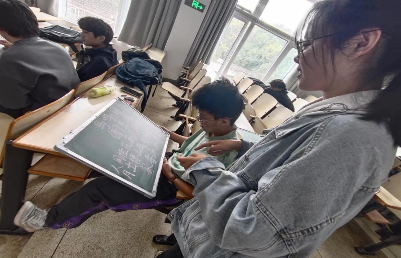 本科2021级音院1班的同学们在上完第一次粉笔字培训后,感觉收获良多。卞显然同学表示,老师上课讲解的很仔细,并且会下来一个个指导练字,课堂互动也很好。她在课堂中学到了一些字的正确笔画顺序、写的好看的方法以及正确的握笔姿势。