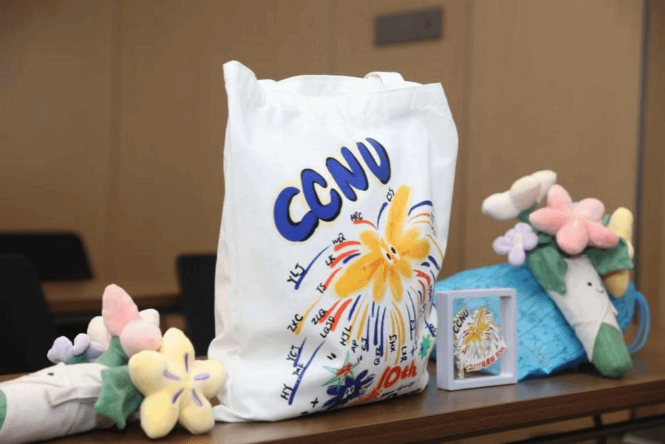 参观结束后,“归巢传薪2011级舞蹈系校友返校座谈会”温情开讲。时任教师代表张菡、兰天文出席,与校友们围坐,分享毕业后的成长故事,回忆舞蹈课堂的汗水与欢笑,字里行间满是对青春的眷恋、对母校的感恩。校友代表陈洁讲到:“这十年,我们或许走上了不同的道路,但是大家从未忘记初心,一直在人生的舞台上,努力跳出最美的篇章。”校友们准备的印有“CCNU”与十周年元素的帆布袋、毛绒花束等文创,更让团聚多了份专属仪式感。